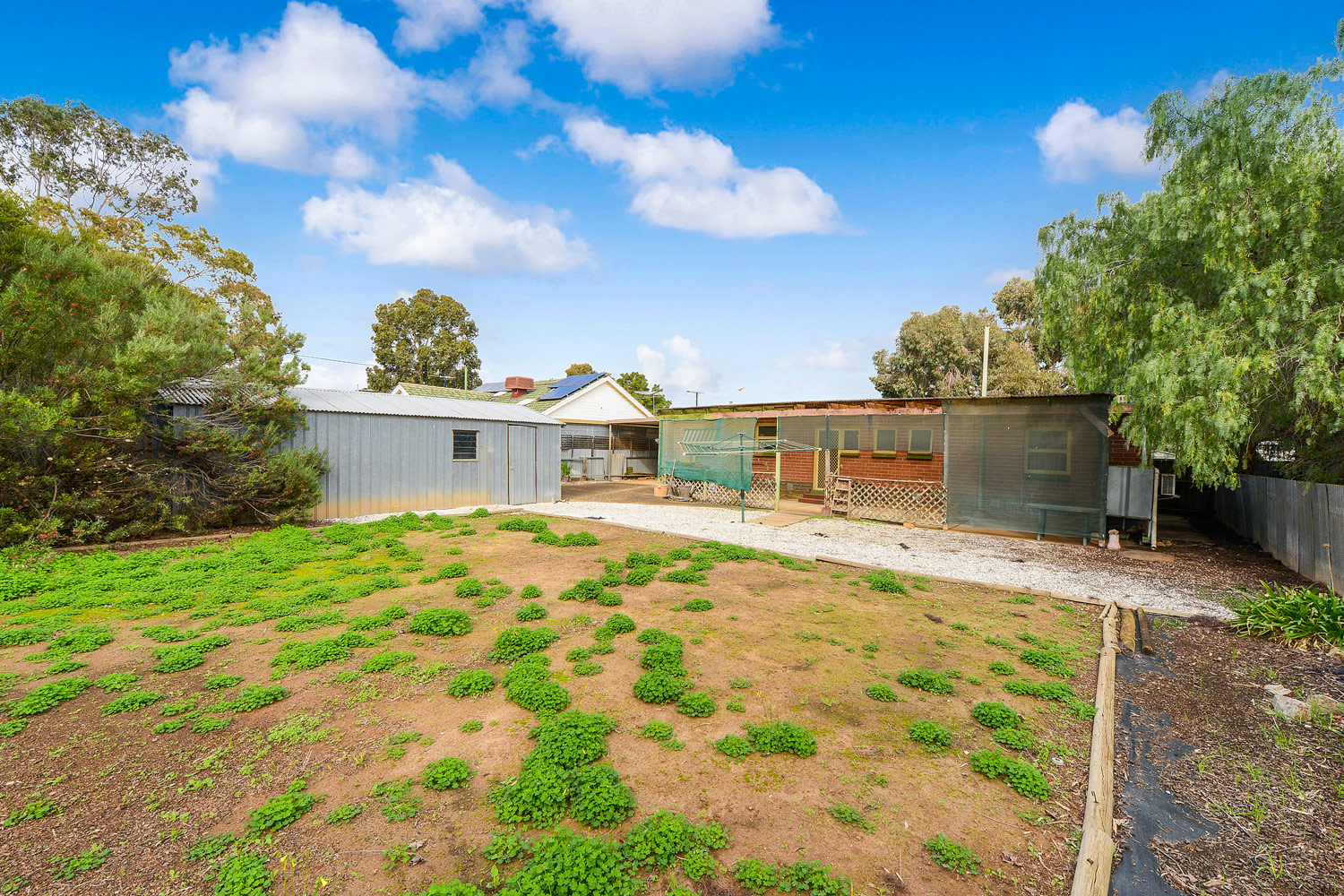 A full width rear verandah provides a spot where you can sit back and enjoy the outlook over your extensive new landholding, while a drive-through single carport with lock-up roller door and a galvanised iron garage provide valuable vehicle accommodation.