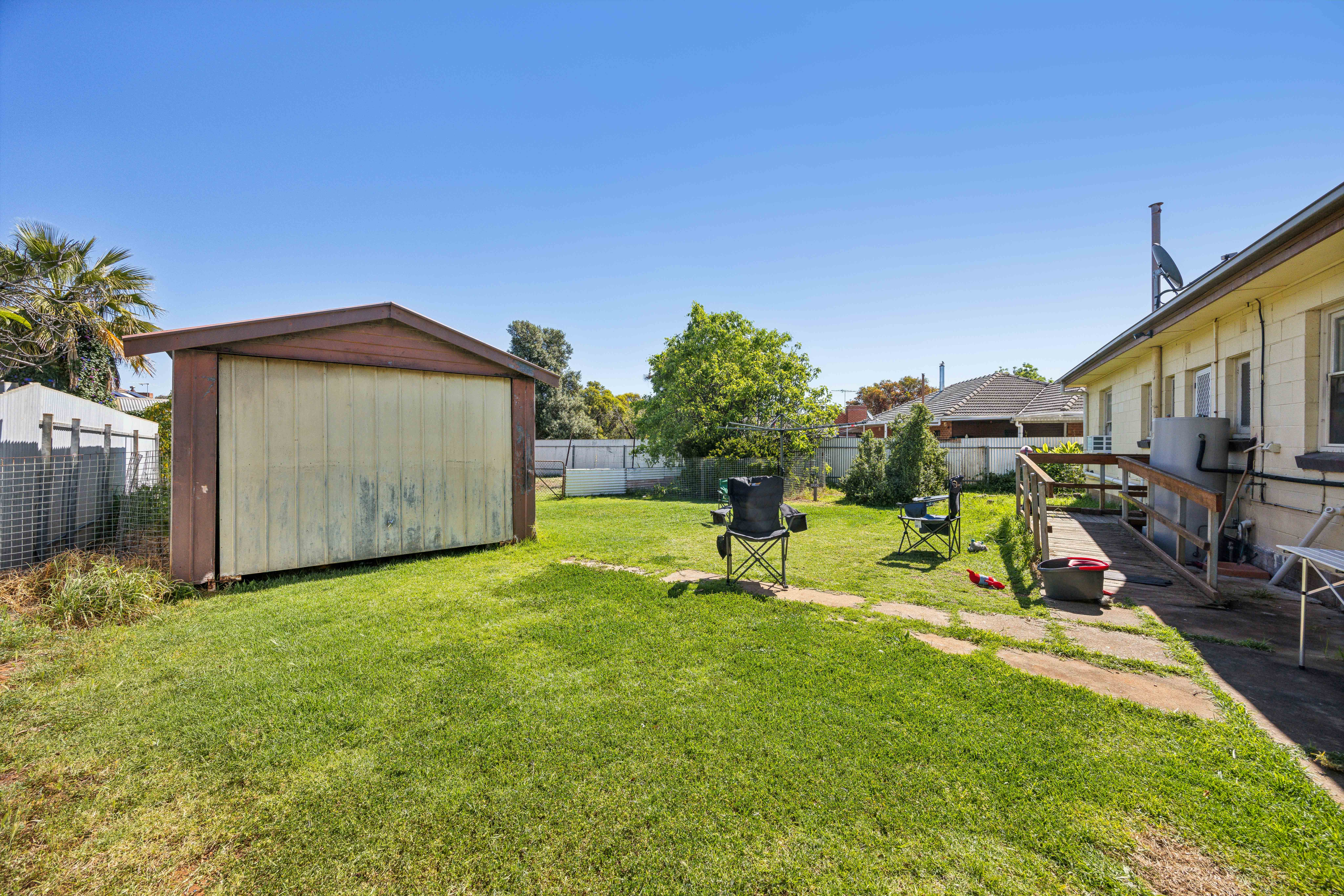 Inside, you're greeted by a welcoming lounge with a cozy heater, flowing seamlessly into the dining and kitchen area. The home features three generously sized bedrooms, all serviced by a neat, well-maintained bathroom. Step outside to the expansive backyard, offering endless potential to create your dream outdoor oasis.