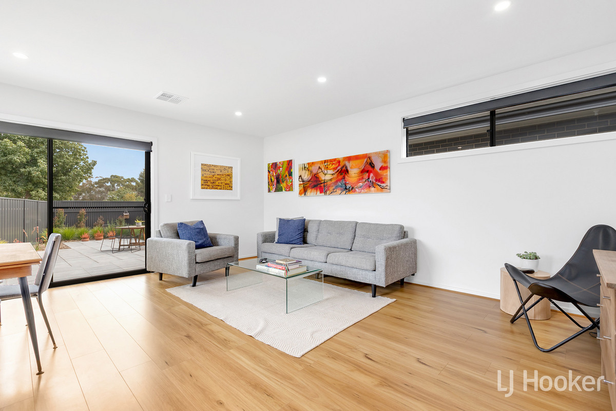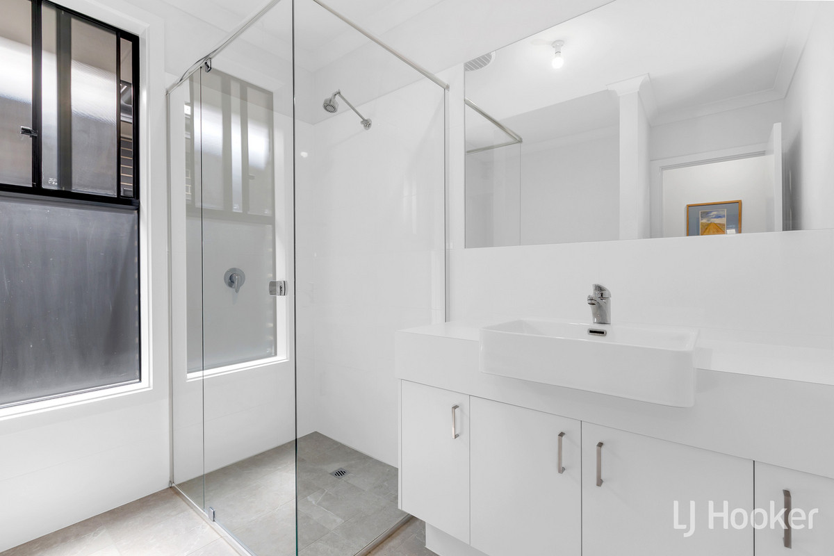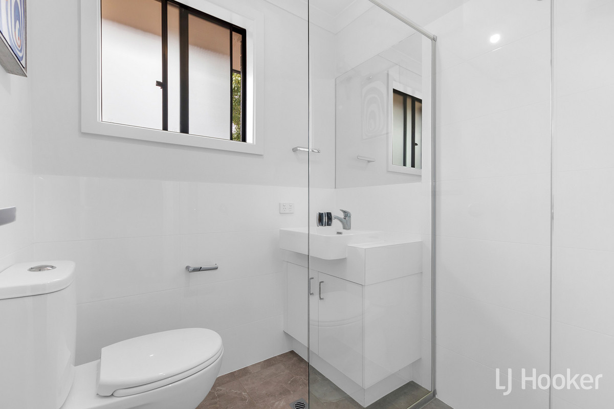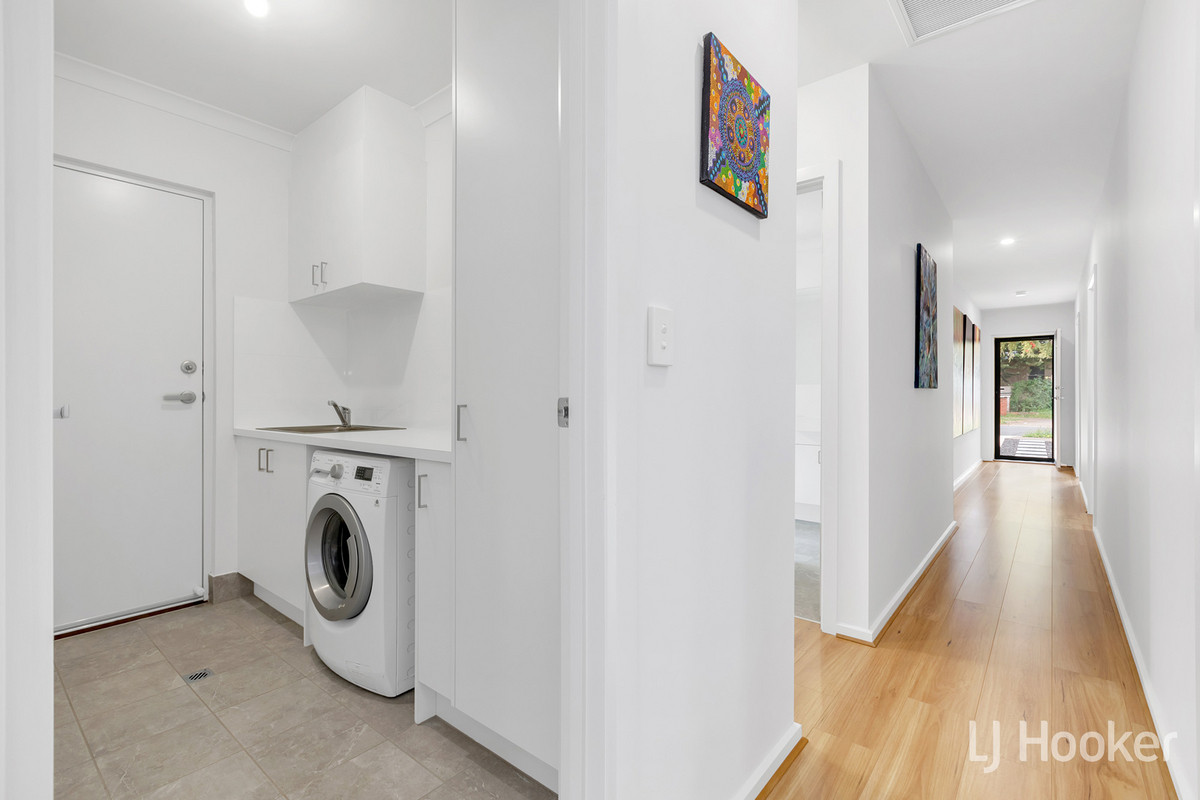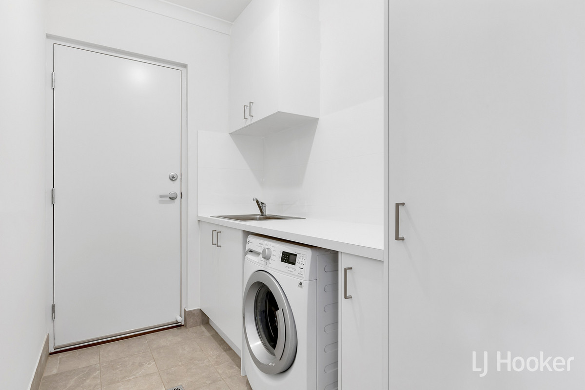 The master bedroom offers both privacy and convenience, featuring a roller shutter and a walk-through robe that leads to a sleek, modern ensuite. Bedrooms 2 and 3 are equally impressive, each with built-in robes and easy access to a sparkling main bathroom and separate toilet. The laundry provides plenty of storage and is designed with both functionality and aesthetic appeal in mind.